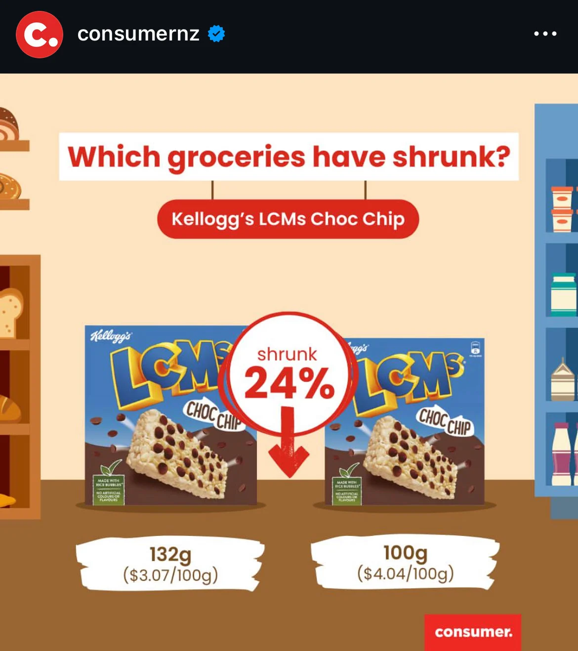 According to Consumer NZ, the lunchbox faves have downsized 24% from 132g to 100g.