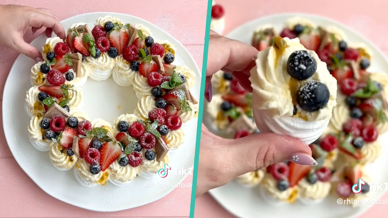 Kiwi user @rhiannonbaldock shared her meringue wreath dessert online and people are obsessed with it.