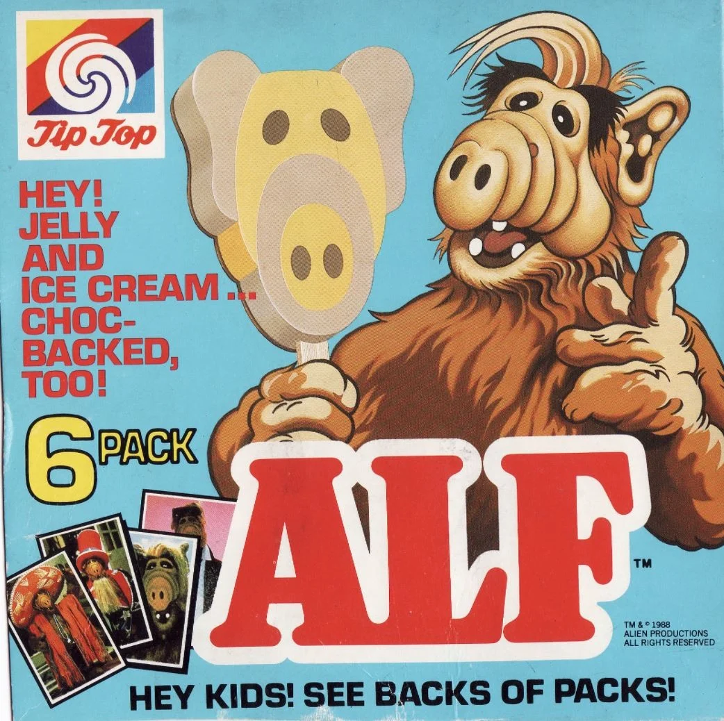 The character on the ice cream comes from the TV show 'Alf' (Alien Life Form) which followed a hairy alien that crash-landed in an American suburban family's home and has to adjust to life on Earth.