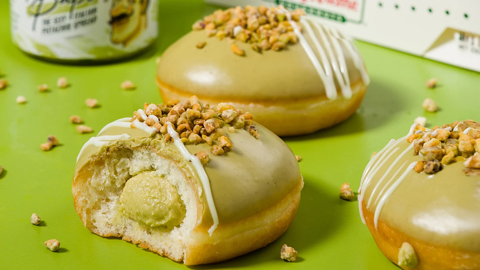 Krispy Kreme has joined forces with the pistachio king himself, Pistachio Papi, to create the latest nutty combo - The Pistachio Overload Doughnut.