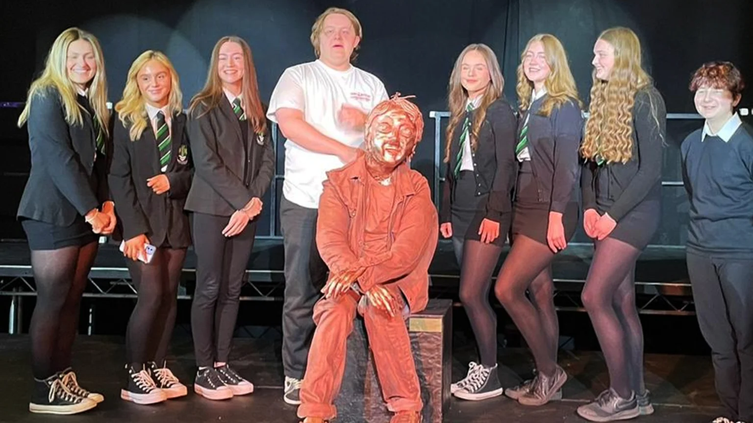 Lewis Capaldi is a great sport about unnerving statue of him made by kids from his old school