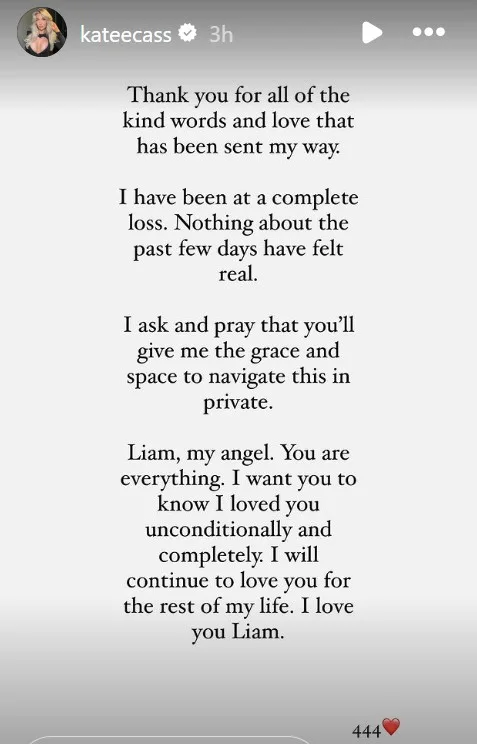 "Thank you for all of the kind words and love that has been sent my way. I have been at a complete loss," Cassidy posted on her Instagram Story on Friday. "Nothing about the past few days have felt real."