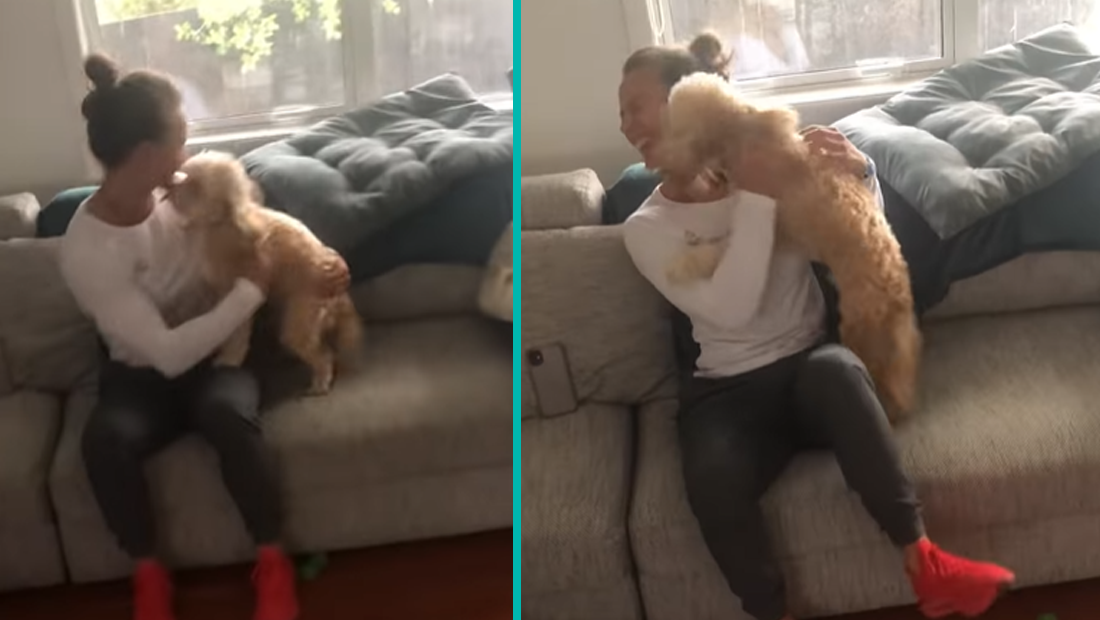 Her dog's excitement is absolutely infectious, and Lisa's smile is as big as anything as the pair share cuddles and pats on the couch.