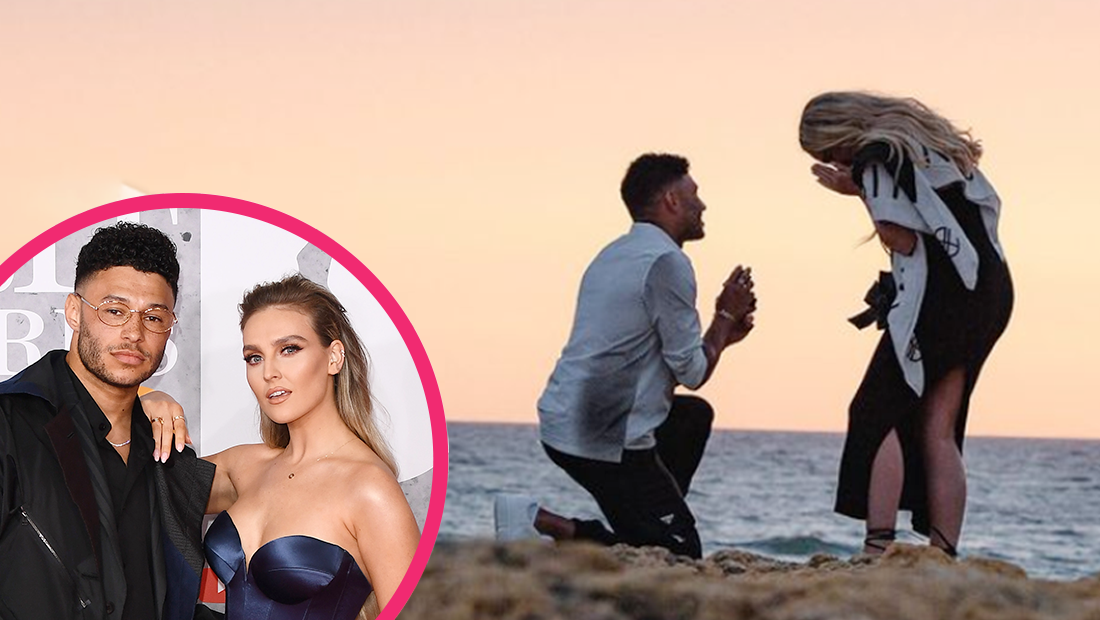 Perrie announced her engagement to Liverpool FC's Alex Oxlade-Chamberlain on Instagram, with a series of photos of the romantic beach proposal.