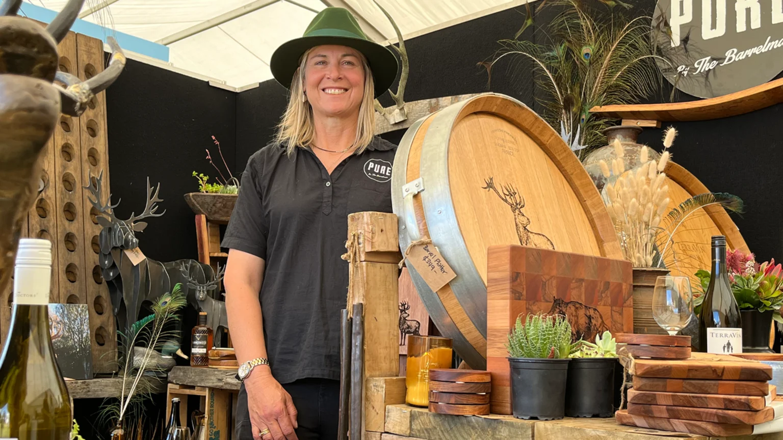 She went on to describe some of the unique products they create, such as platters from the tops of the barrels, furniture from the middle, and even gumboot racks and coat hooks.