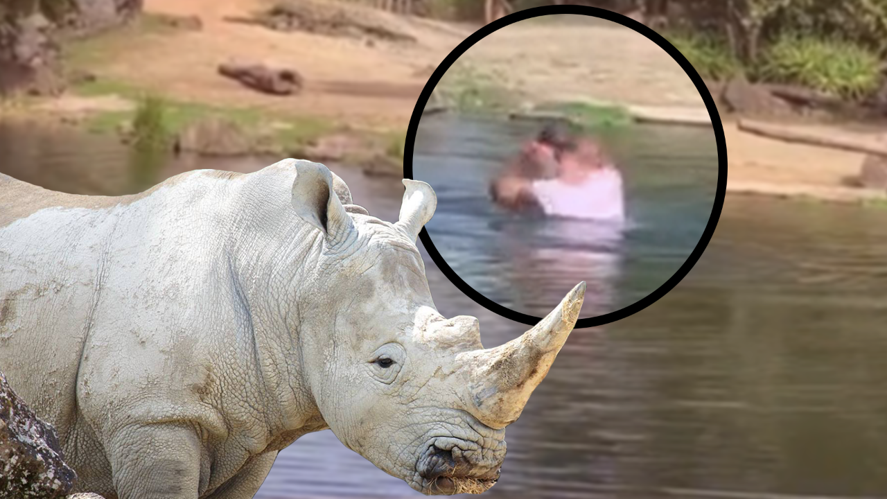 Punters at Auckland Zoo got a hell of an unexpected horny surprise when a bloke was spotted having a bath in the watering hole of the rhino enclosure.