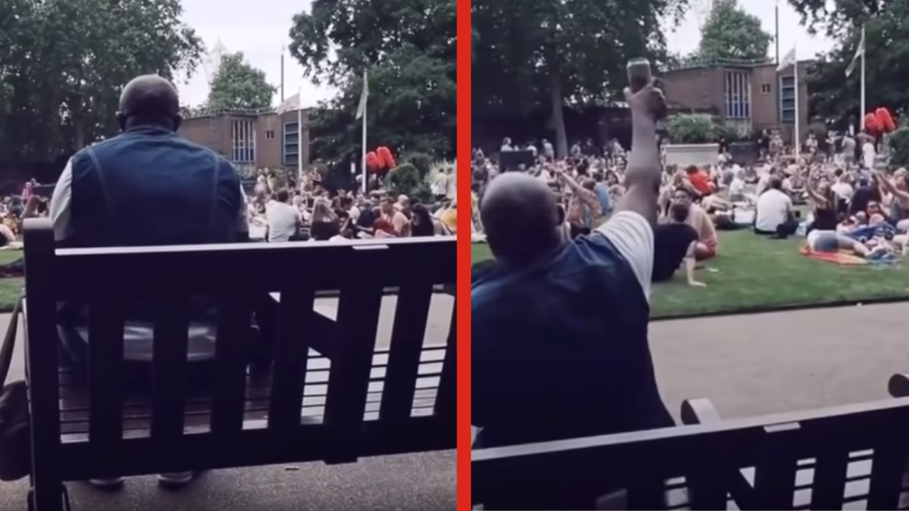 A pretty cool moment was captured on camera, of a man sitting by himself on a park bench singing 'Livin' on a Prayer'. At the beginning, you can see a couple people give him a confused side glance, and the feeling of "this could be a f*cken awkward video" creeps in.
