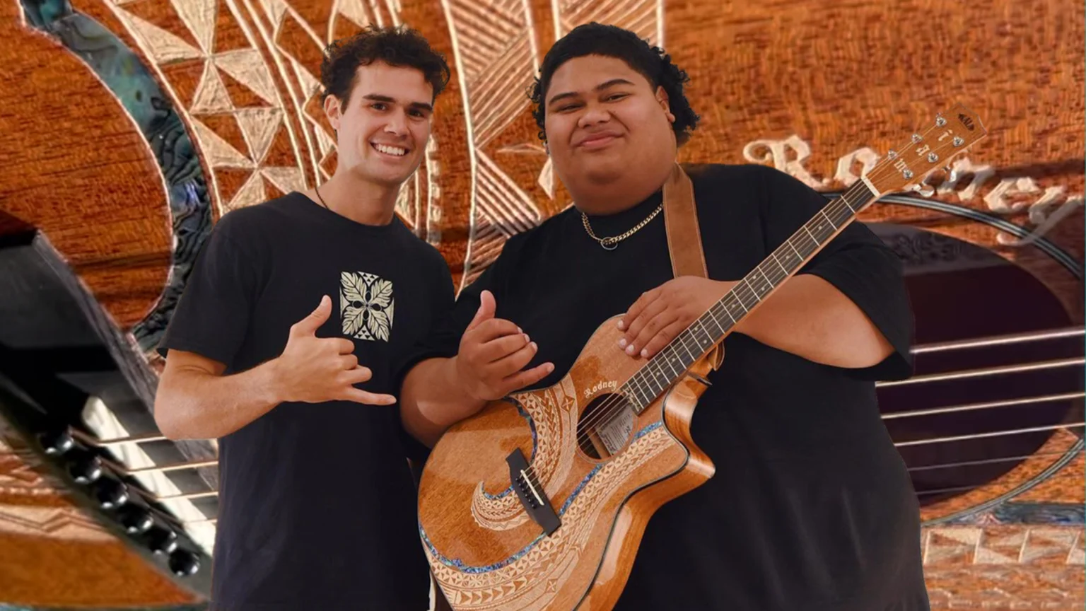 Hawaii-based Maori artist Sam Mangakahia aka Hamiora Art gifted a customised guitar to the just-announced winner of American Idol Iam Tongi.