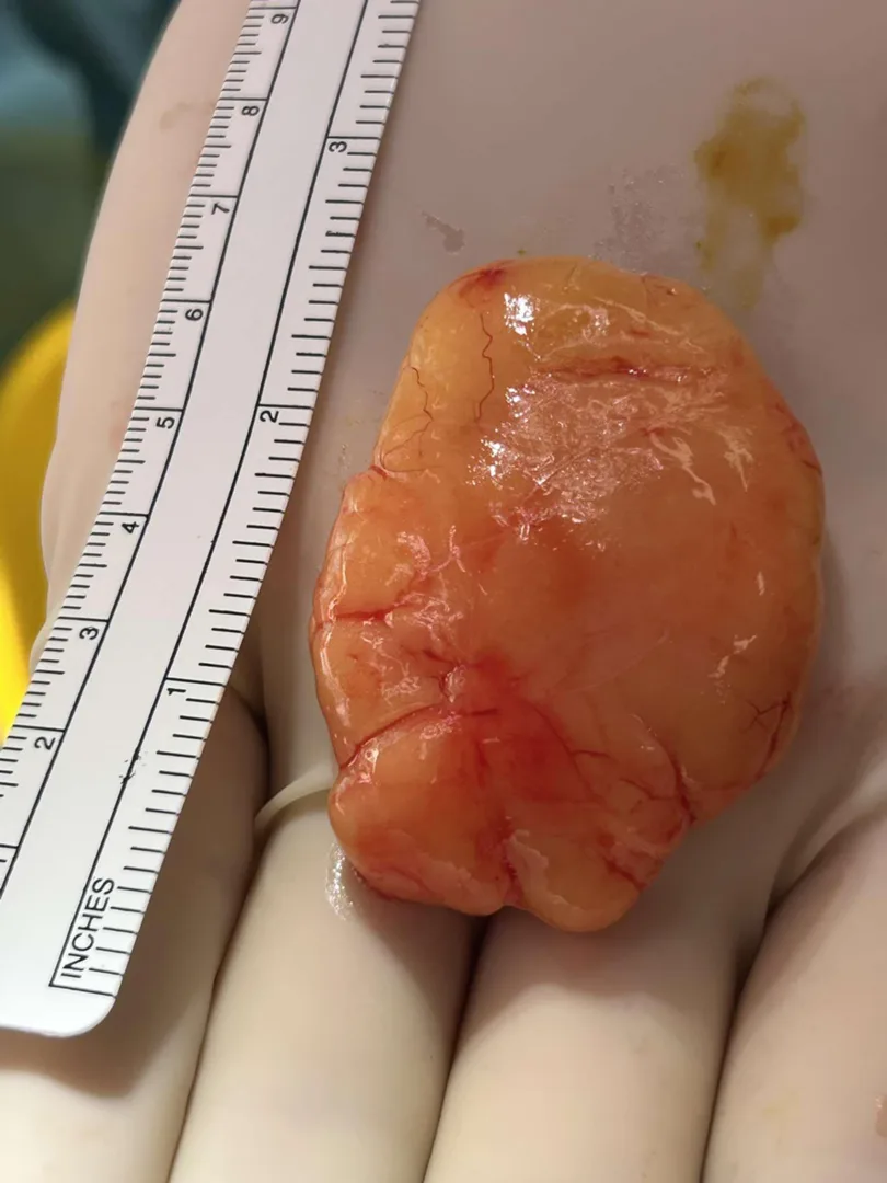 Flynny's bump, which has been dubbed nicknames like 'Lumpy' and 'Creme Egg', made its exit into the big wide world after a minor surgery, and Flynny wants to keep it in a jar.