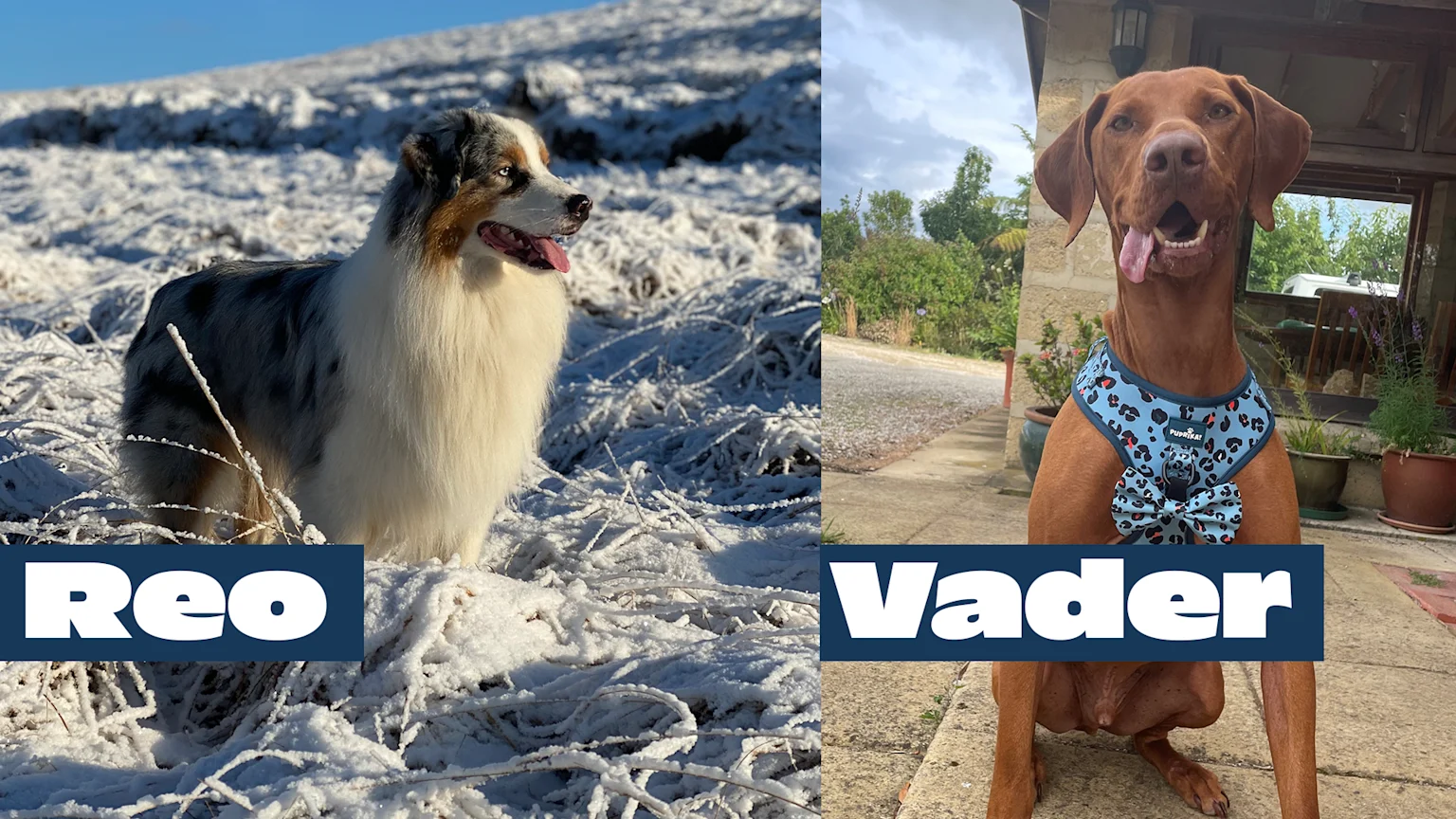 Vader: "Vader the Vizsla is a 30kg goofball who loves adventures and thinks he’s a lap dog. He’s sweet, cuddly, and always the first to comfort anyone sick or hurt, even after his own surgery. Smart, loyal, and always up for learning (especially for treats), Vader’s got the biggest heart".