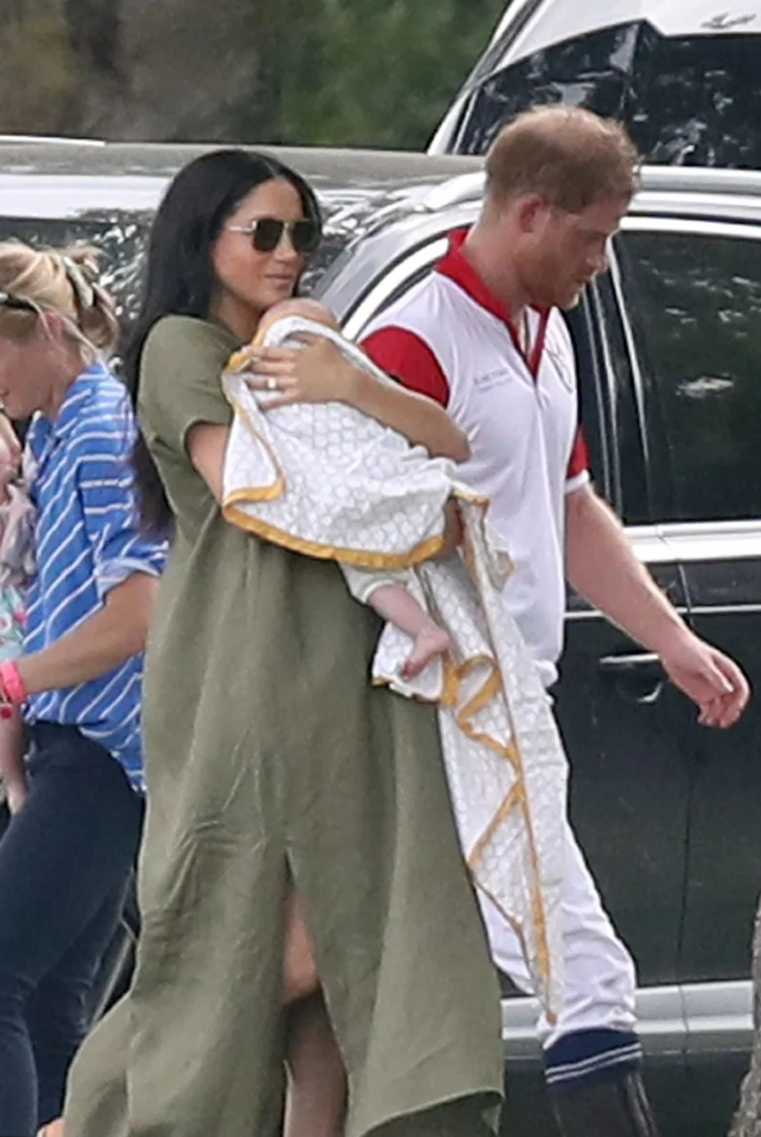 Archie has made his first public appearance just days after his private christening. The little royal was seen swaddled in his mother's arms as his dad played against uncle Prince William on the field. Although the infant spent the game on the sidelines, he and Meghan reunited with Harry at the end of the game for a sweet family moment.
