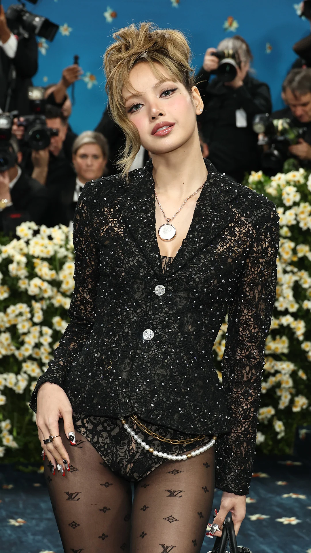 The Blackpink member, who recently appeared in season three of 'The White Lotus', was dressed by Louis Vuitton for the event, wearing a blinged-out jacket and LV-emblazoned tights - but that's not what's got people talking.