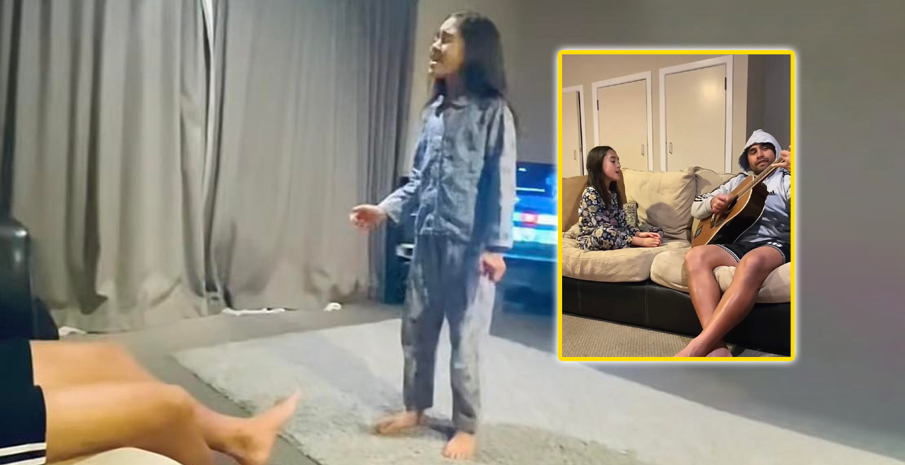 A mother managed to capture an awesome jam session between father and daughter as they sang 'Tiaho Mai Ra' together before bedtime.