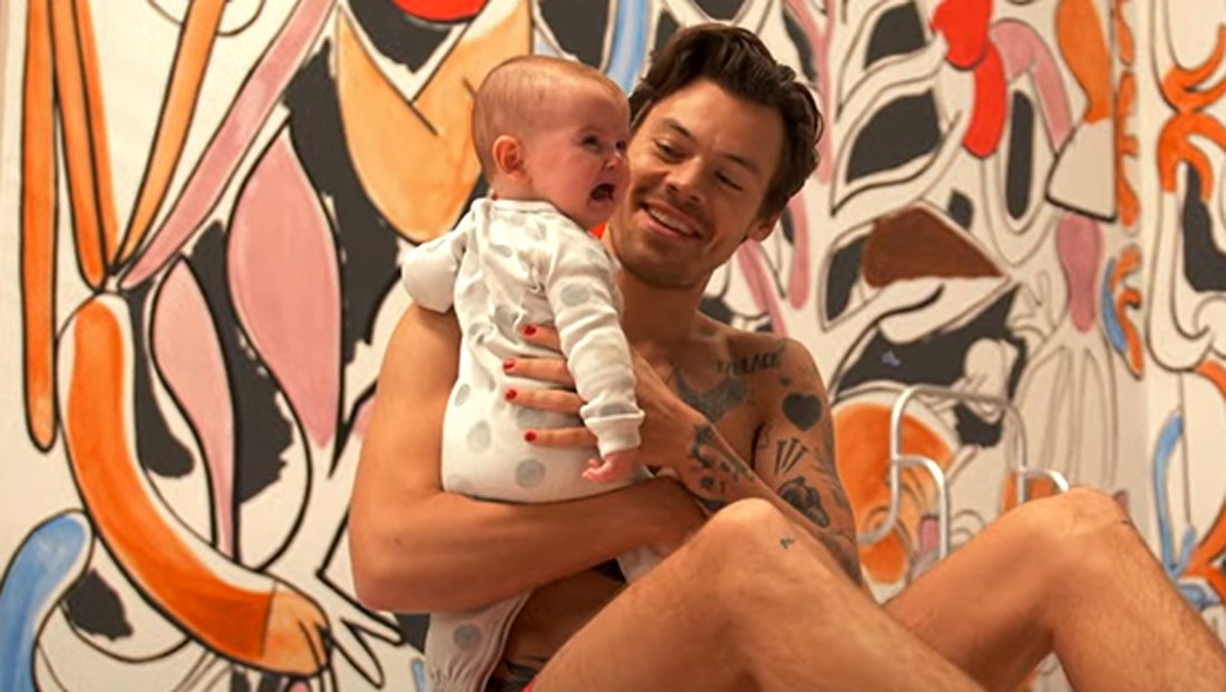 Harry Styles just dropped a behind the scenes clip for the 'As it Was' music video and it features this moment of Harry holding a baby.