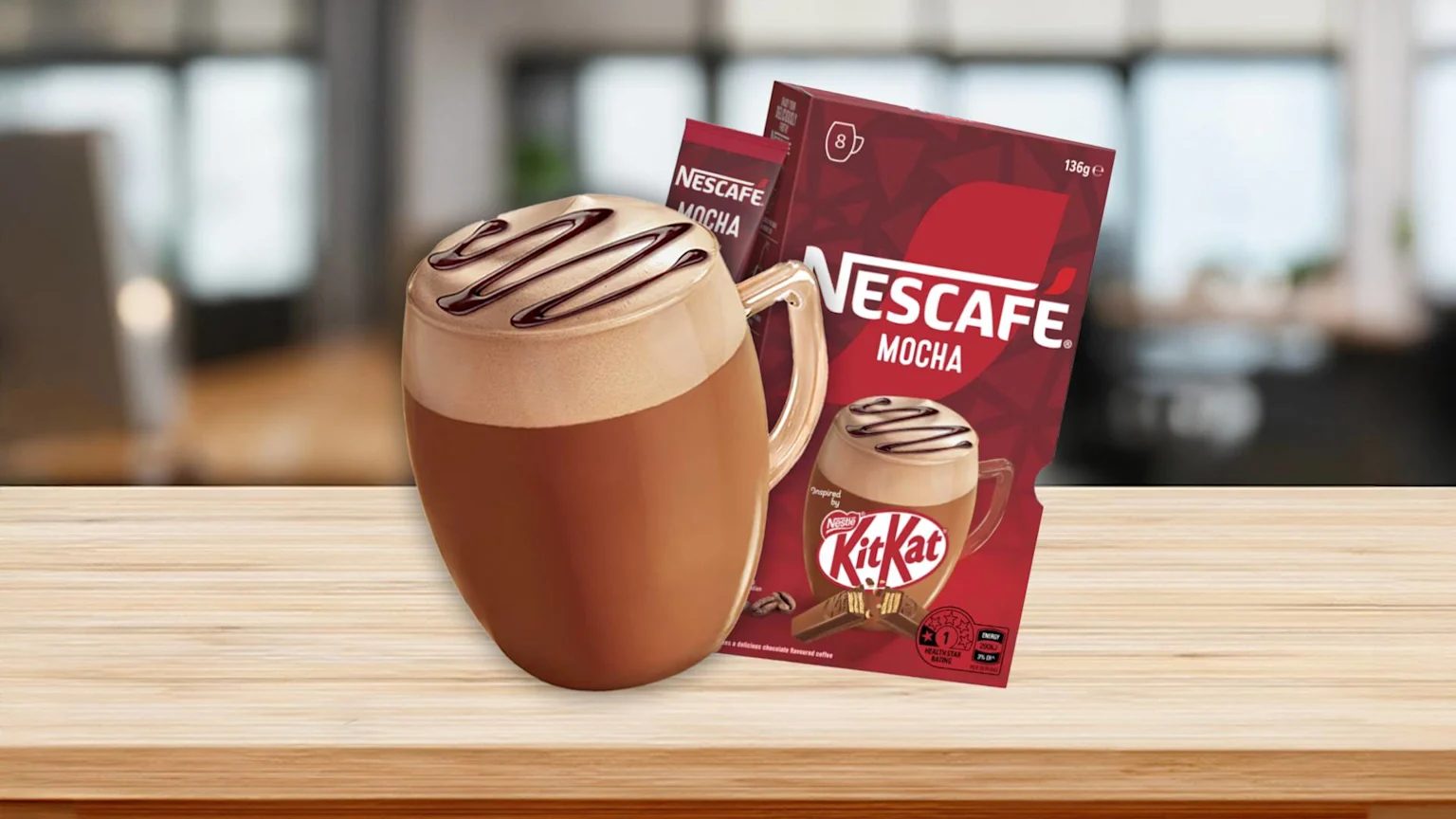 Nescafé has just launched their 'Mocha inspired by KitKat' in single serve sachets that claim to contain the "velvety froth of Nescafé with the irresistible rich chocolate and wafer flavour of KitKat".
