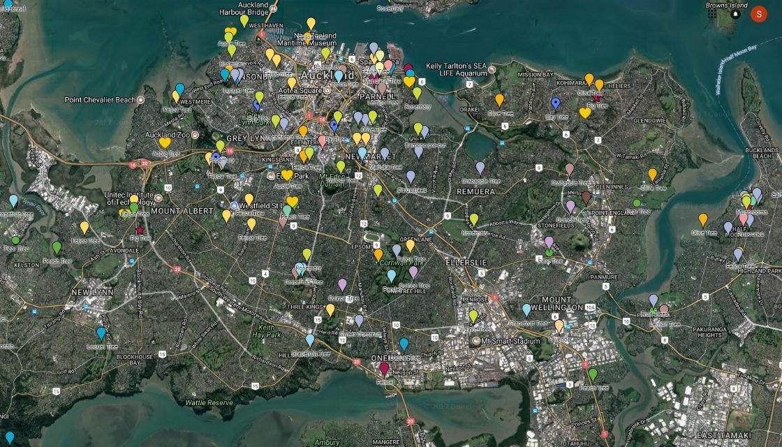The interactive map also allows Kiwis to add what they're growing on their own property. Dotted around Auckland is everything from coconut trees out west to avocadoes out south.