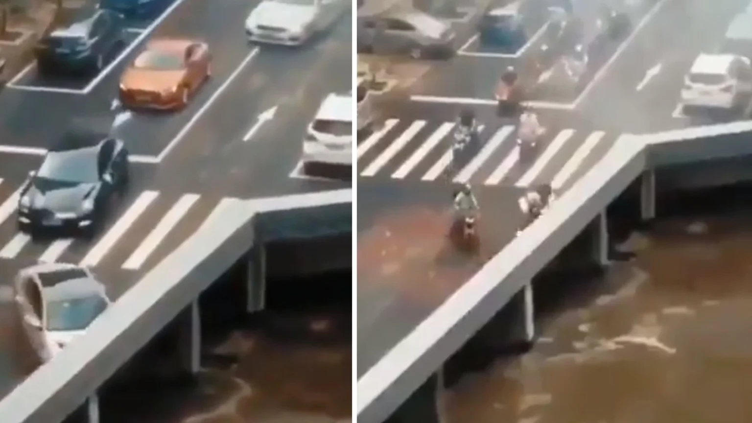 The video shows cars turning off a street and simply disappearing from view, how exactly is the question on everyone's lips.
