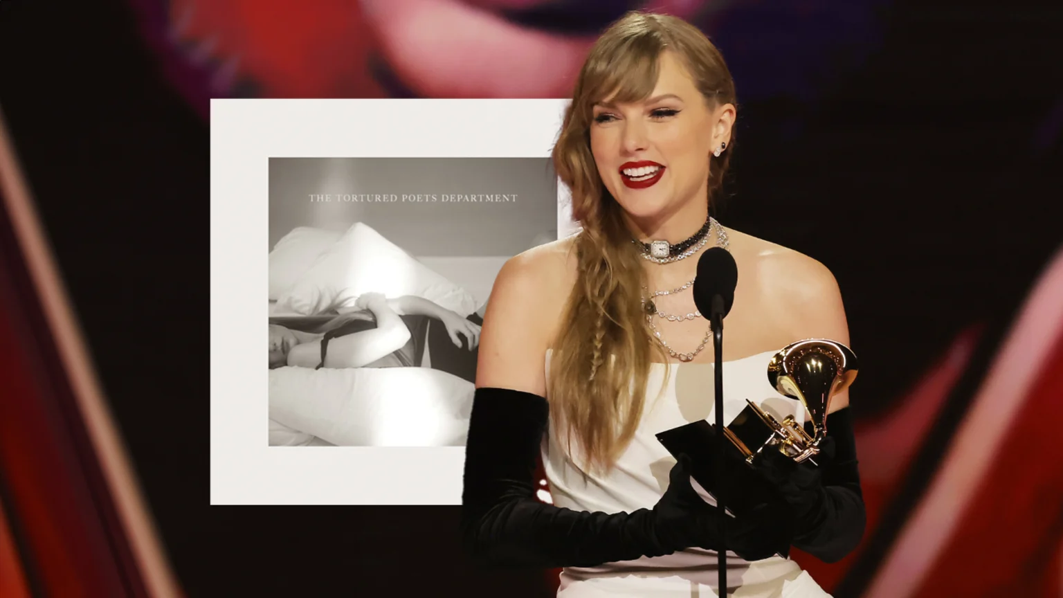 "I'm telling you a secret I've been keeping for the past two years," she said during her acceptance speech for Best Pop Vocal Album. "Which is that my brand new album comes out April 19th. It's called 'The Tortured Poets Department'.