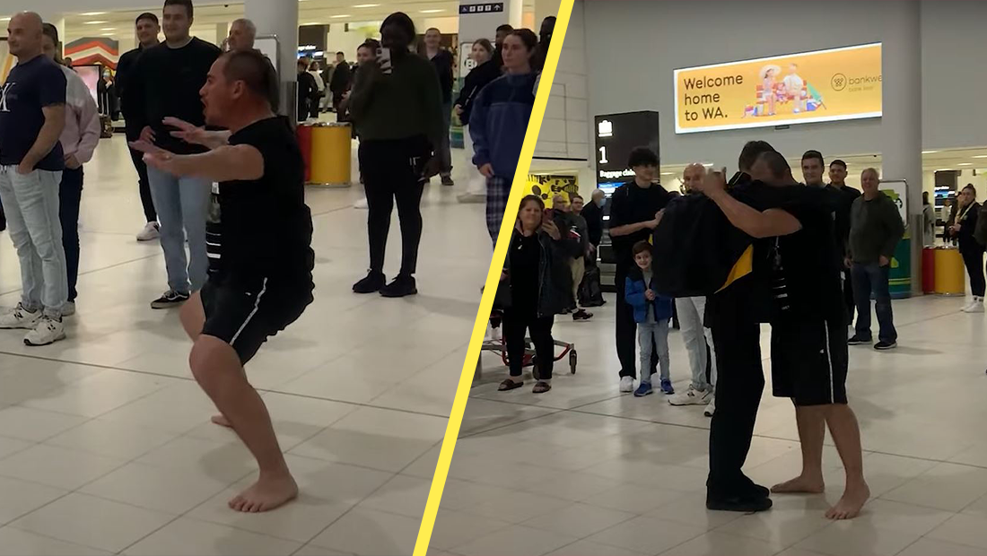 The clip was posted to the subreddit r/MadeMeSmile with the title 'Father performs the Haka as he meets his son at the airport. There was not a dry eye in the house.' Take a look at the haka below.