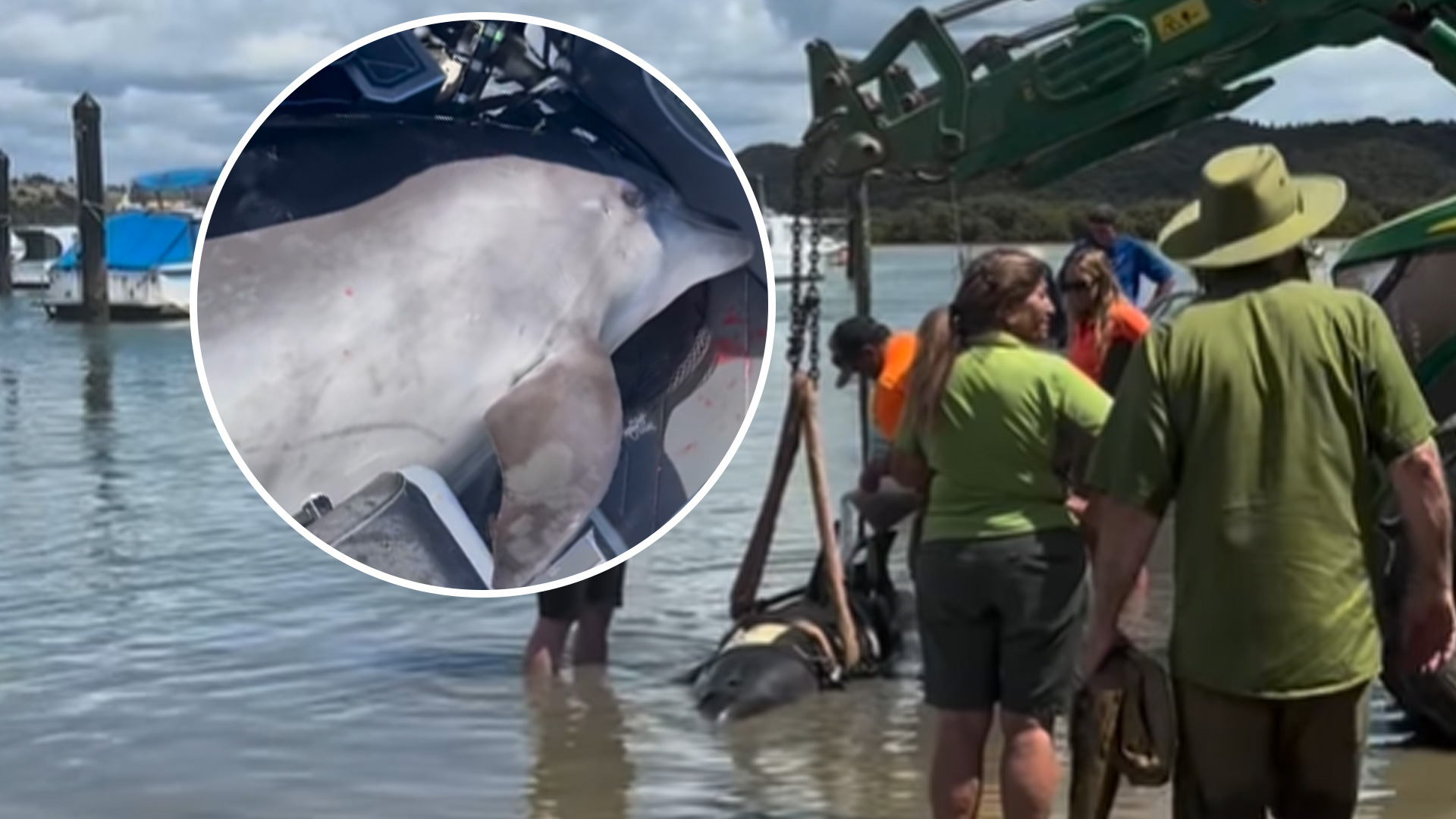 After realising the mammoth mammal was too heavy to lift on their own, the group immediately called DOC (Department of Conservation) and the Coast Guard for guidance as they headed back to the Waitangi boat ramp.