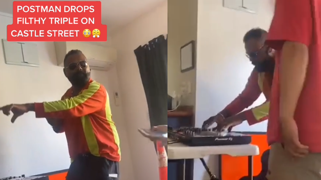 Posting on TikTik, Producer Rit shared a video from earlier this year of an NZ Post Delivery driver, Rishi Kumar, jumping on the decks at a Dunedin flat.