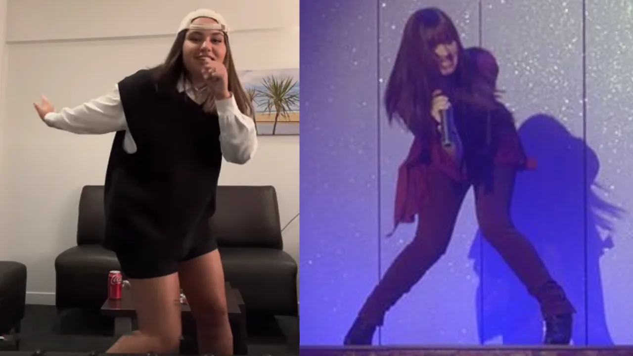 We can't skip past her recreating Demi Lovato's iconic "Mitchy knee" from 'Camp Rock'.