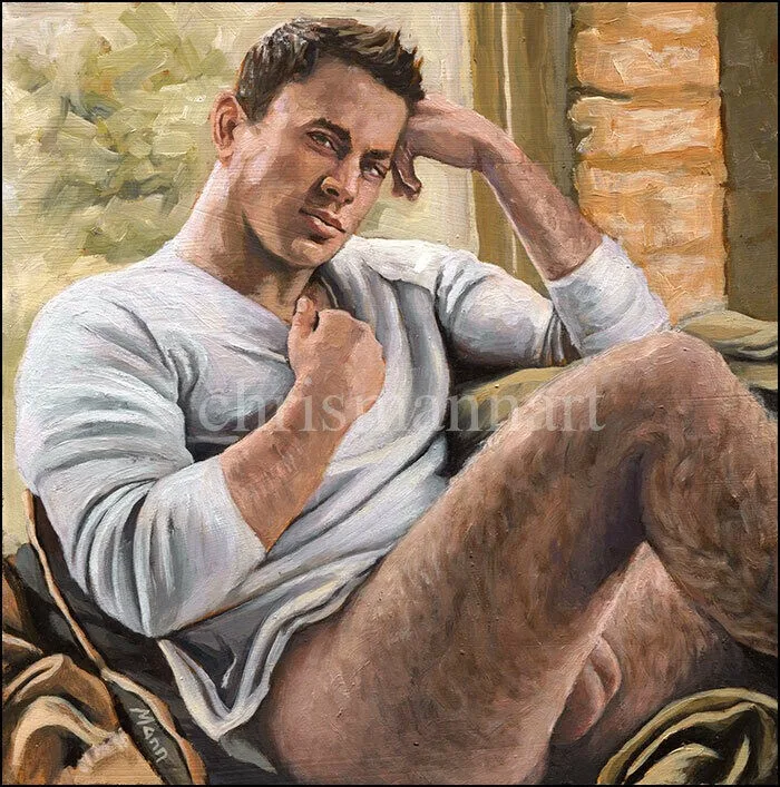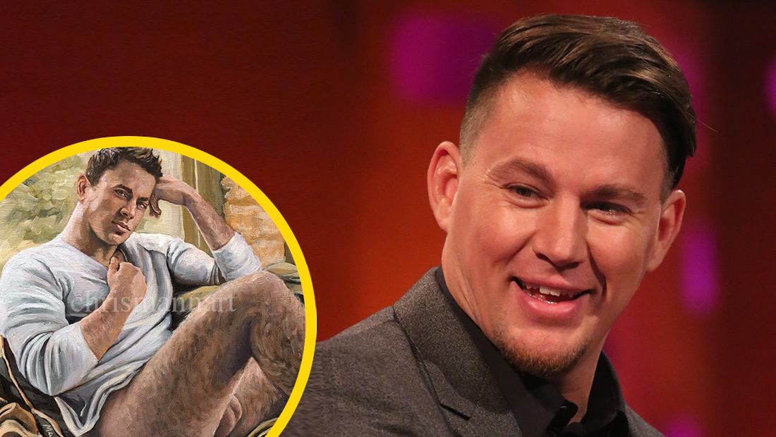 The art work, which depicts Tatum sitting while wearing nothing but a grey long-sleeved top, was created by Los Angeles artist Chris Mann.
