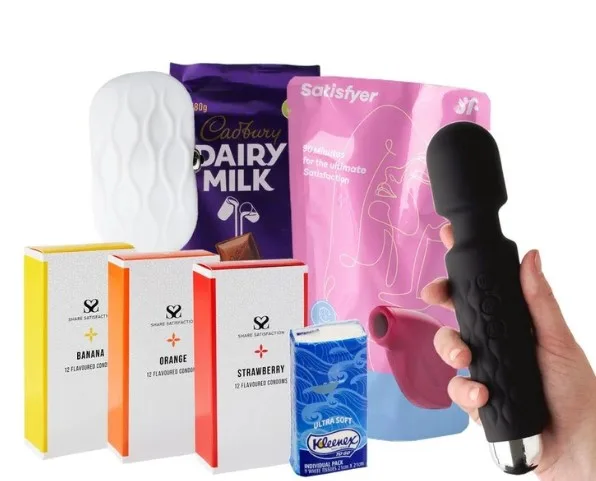 The Break Up Bundle: tissues for your tears, chocolate for sweetness, and toys to remind you that self-care is just as good as a partner.