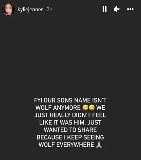 "FYI, our son isn't called Wolf anymore," Kylie wrote on Instagram.