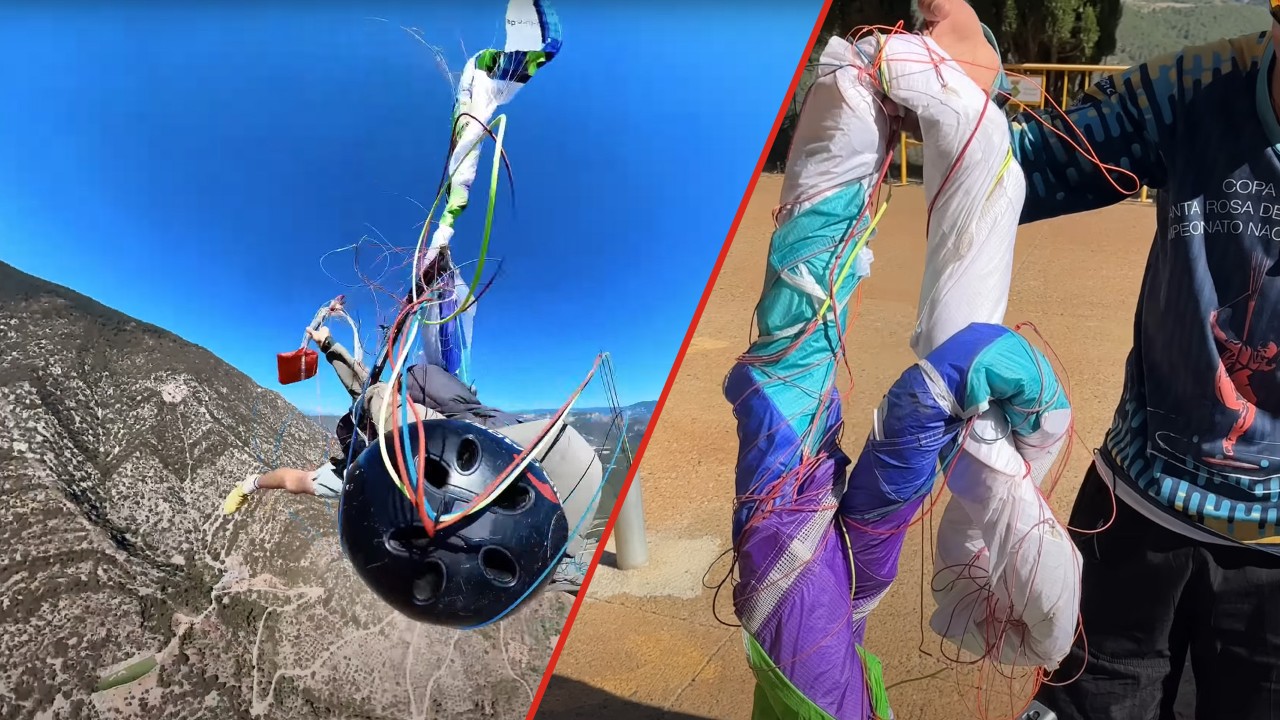 What was meant to be a sick paraglide in Organya, Spain quickly turned into a death-defying situation when Kevin Philipp's lines got tangled in his parachute.