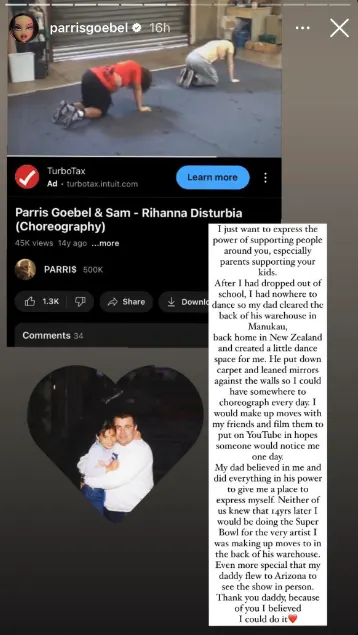 Revealing on her Instagram story Parris shared a photo of one of her old YouTube videos where she choreographed a dance to Rihanna's 'Disturbia' and shared an adorable story of how her dad contributed to her passion for dance.