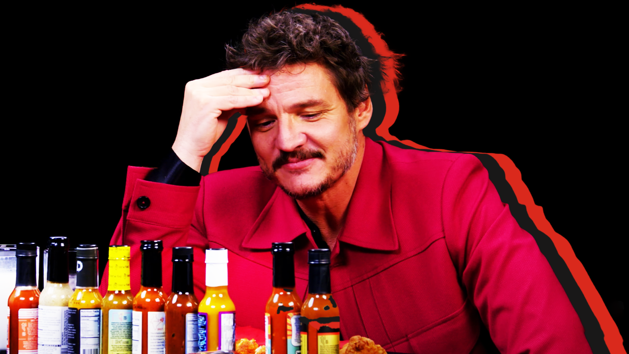 Pedro Pascal, the man of the hour, has taken the 'Hot Ones' challenge - trying to woof down 10 hot wings, each one more spicer than the next, while also being interviewed.