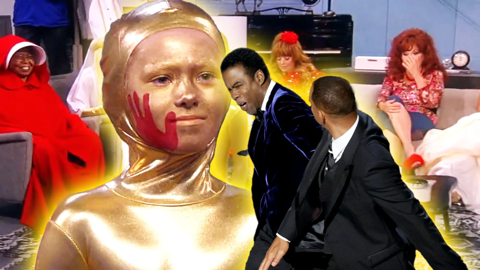 "So we have our interpretation, we have an Oscar statue, we call this the Oscars slap. He has a red facepaint on the statue."