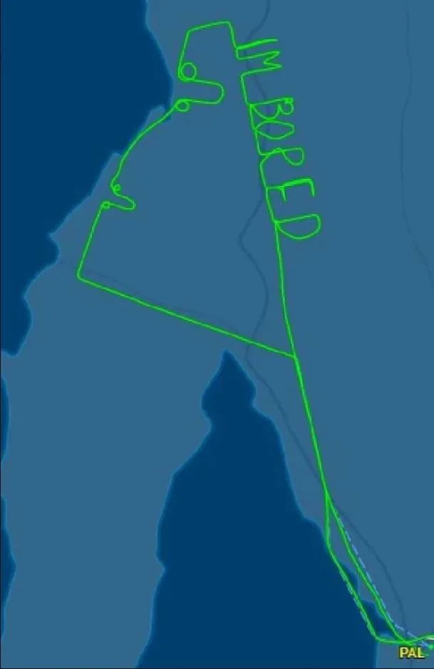 After setting off he decided to use his flight path to reveal his thoughts about the job... in a big way. The pilot spelt out 'I'M BORED' and made two giant cock and balls, right over the coast of South Australia.