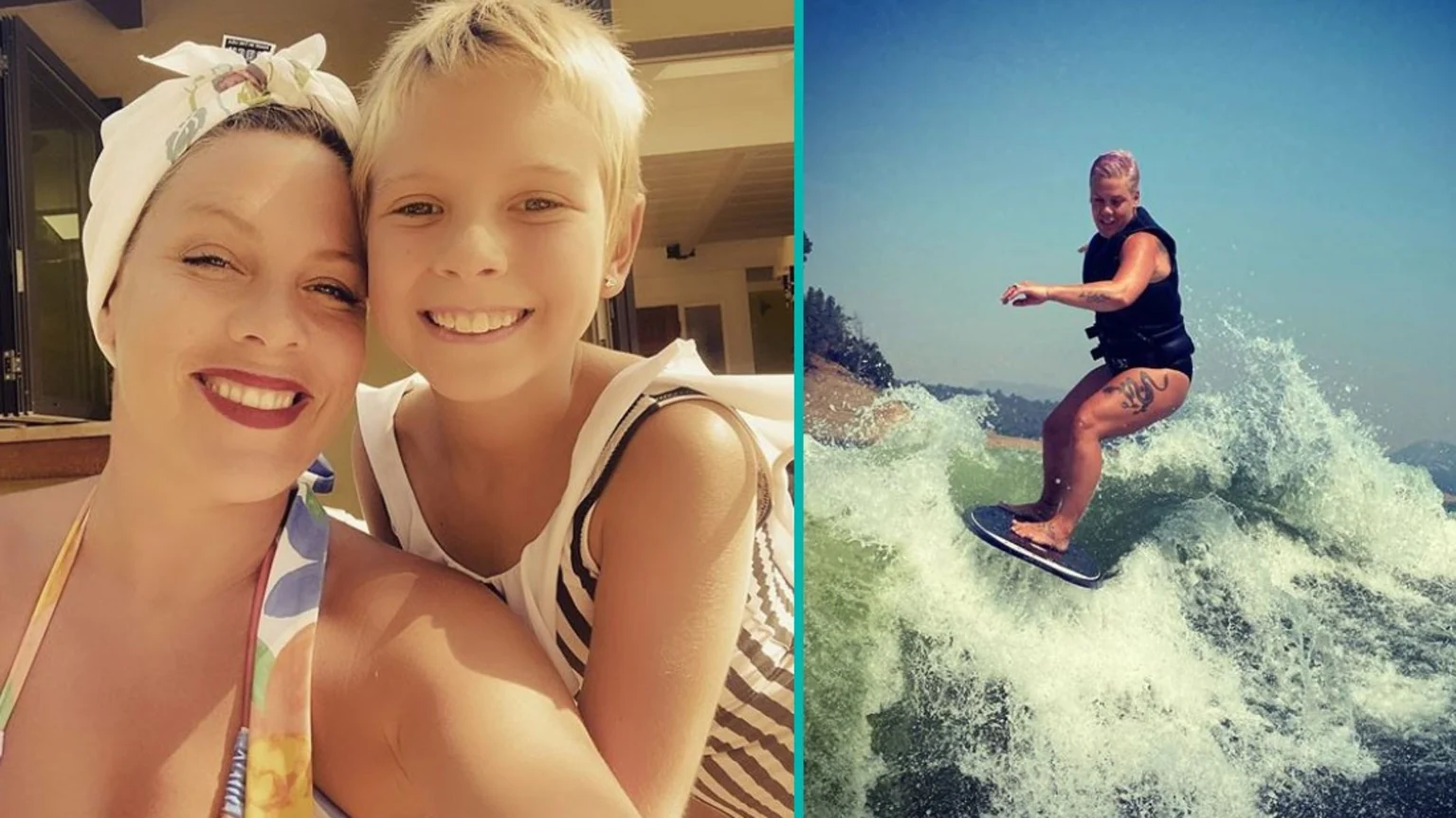 "I always wondered why God gave me thunder thighs. It's cause he knew I'd use them" P!nk captioned an Instagram post of her carving up some wakes on her wakeboard.