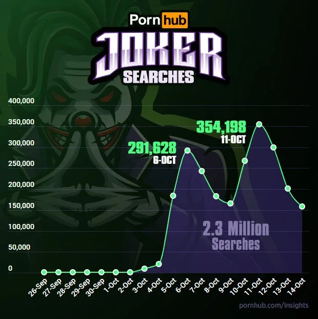 I mean, have a look at this graphic showing when the Joker movie was released, and how a massive spike in Joker searches appeared after the movie's cinematic release.