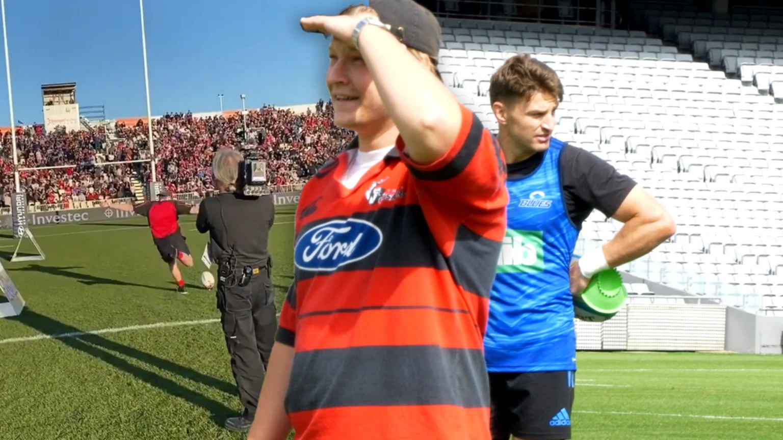 ...in the middle of Eden Park... in front of the whole Blues team... while Beauden Barrett was also practicing his kicking...