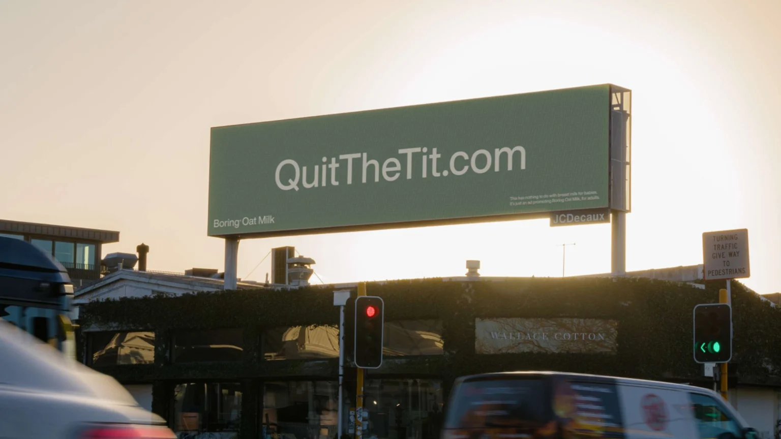 New Zealand dairy-free milk company, Boring Oat Milk has teamed up with a creative agency to launch what people are calling a 'provocative' new campaign 'Quit The Tit' aimed at weaning Kiwis off cow milk.