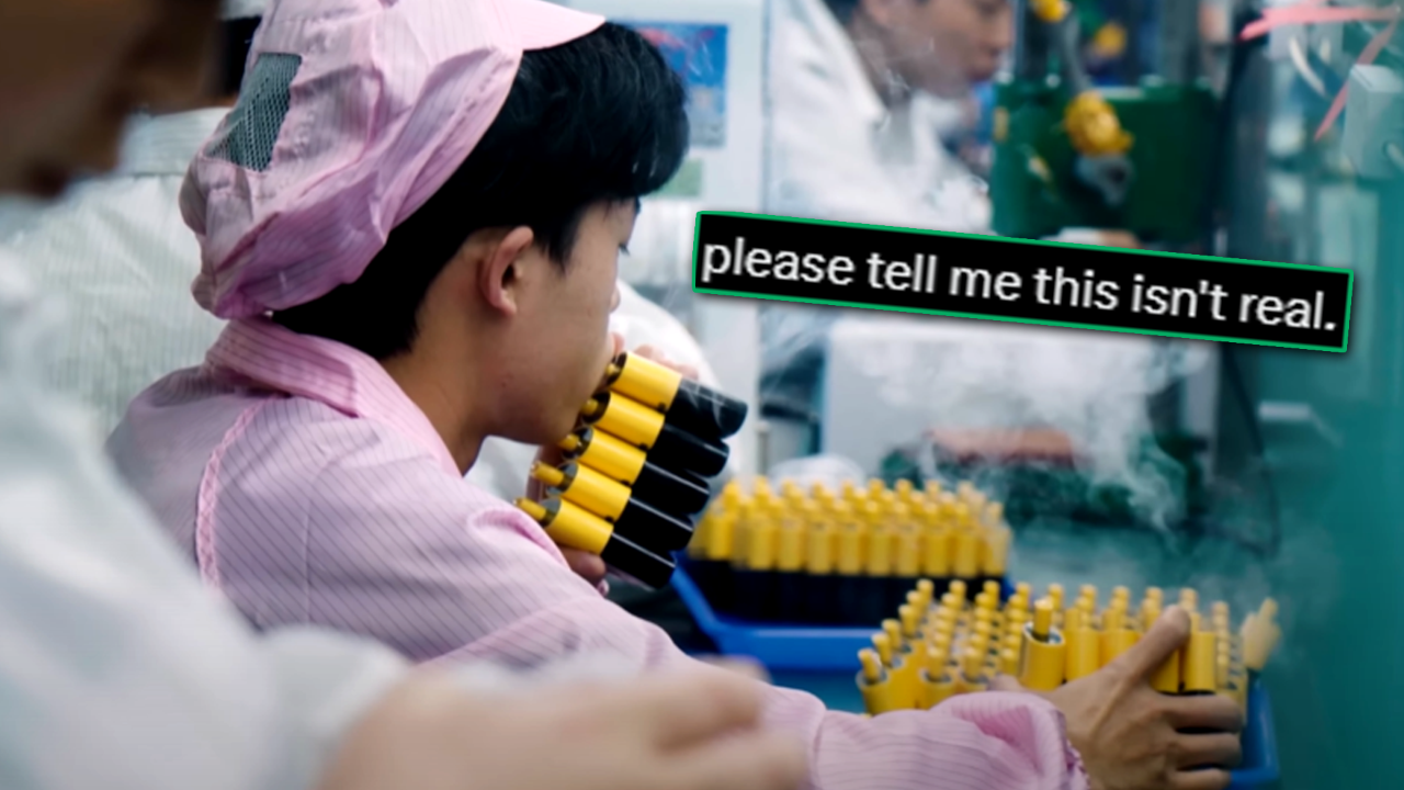 The shocking video titled 'Do they REALLY test every single vape by mouth??' shows every step of the production line and it turns out the answer is a big YES!