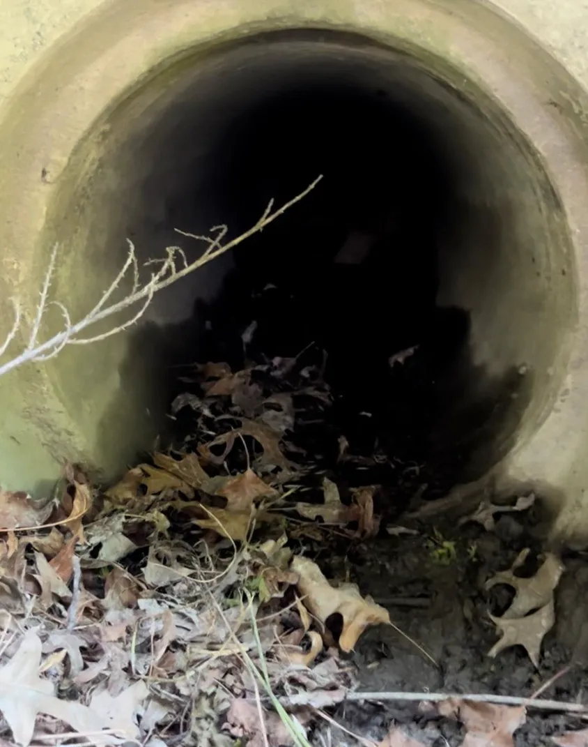 Once adam was inside the pipe he realised how scary it must've been for the dog because it truly was pitch black, it was cold and it stunk.