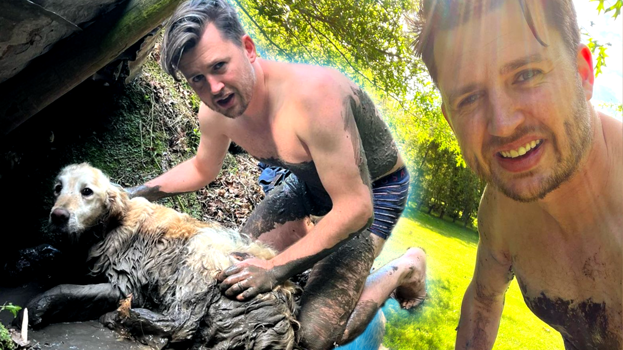 The Breakfast Club's very own Adam Percival had a heart-racing adrenaline-pumping weekend after saving his father-in-law's pet pooch from a muddy pipe.