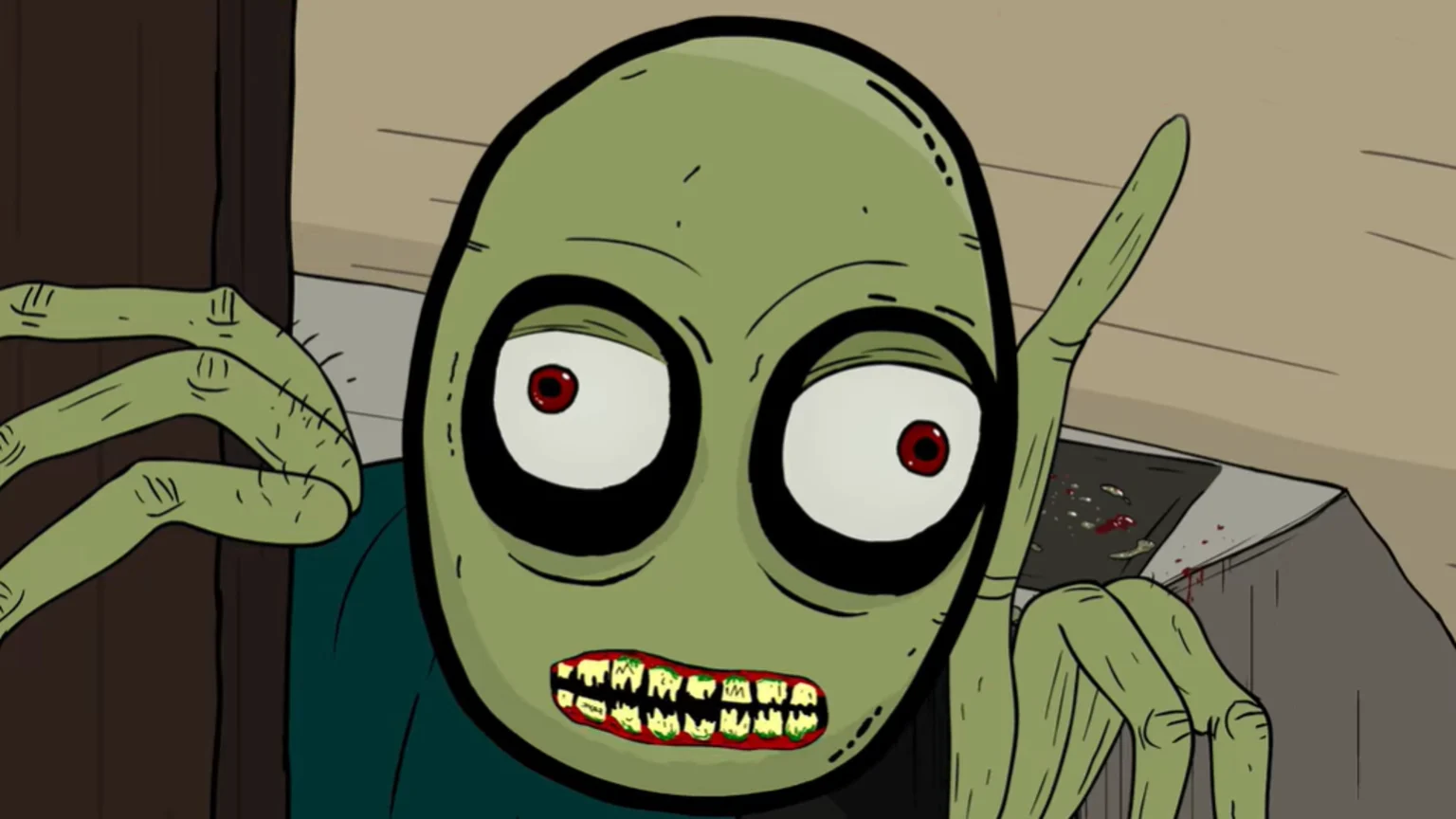 The cartoon follows a creepy little fella called 'Salad Fingers' - a green bodied thing with bulging eyes, long slender fingers and a hella weird voice - and debuted in 2004 with an episode called 'Spoons'.