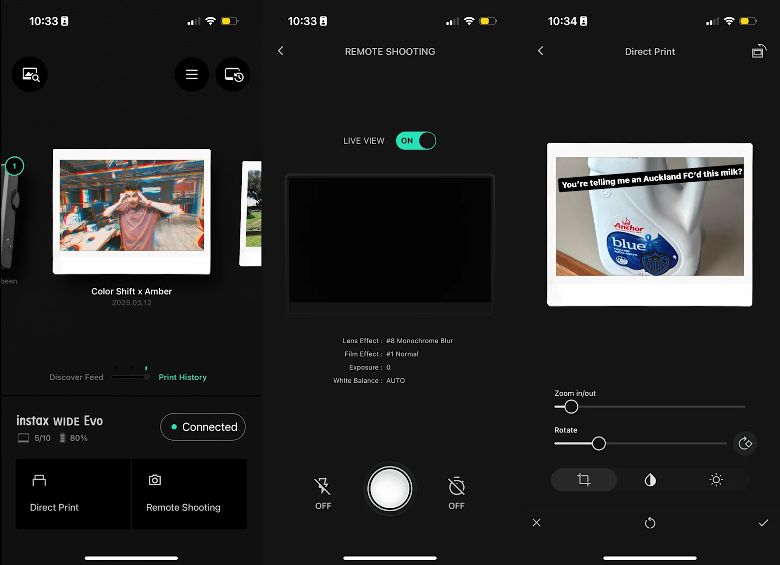 On wasting film, another key thing about the camera is that you don’t even have to use it to take the photos. With the companion app on my phone, I was able to quickly pair the camera and open up a bustling two way street of photo sharing.