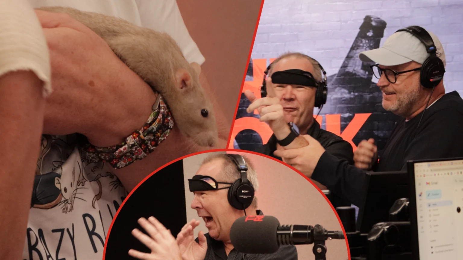 Rog loses it and drops an f bomb live on air after we surprise him with two rats