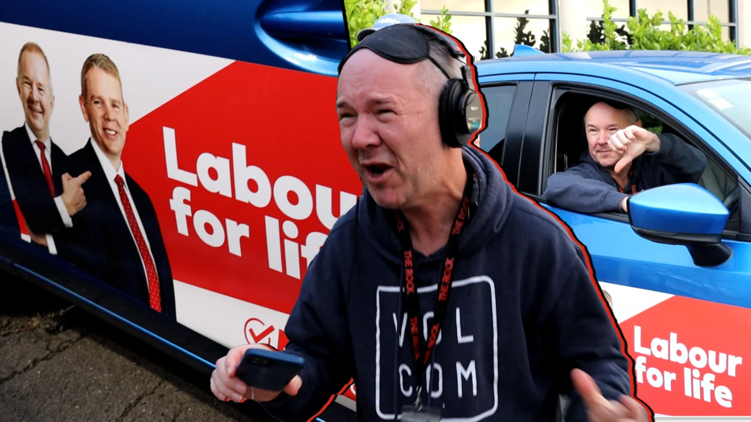 Rog's meltdown after his car got sign-wrapped with Hipkins and Labour signage