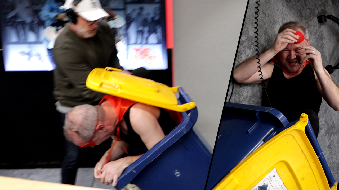 In this week's 'Can Rog Fit?' segment, we wanted to see if Rogee could fit into Producer Ryan's recycling bin.