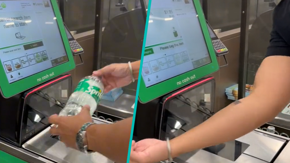 In the video, he first scans a bottle of sprite no sugar and then scans the barcode tattoo that is on his inner forearm.