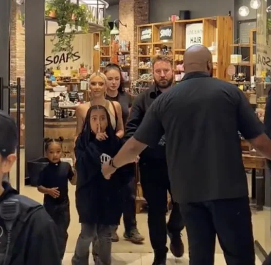 The clip posted by TikTok user @eddiesonnys123 shows North is a little bit ahead of the others and looks unimpressed as she holds her finger to her mouth and tells the crowd to shush.