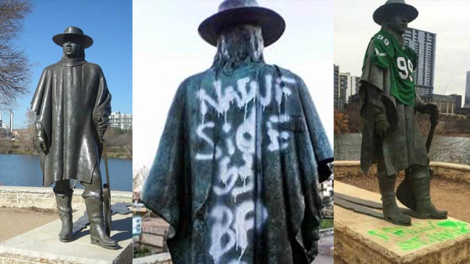 The iconic statue of legendary blues performer Stevie Ray Vaughan at Austin, Texas, was vandalized by taggers for the second time since January.