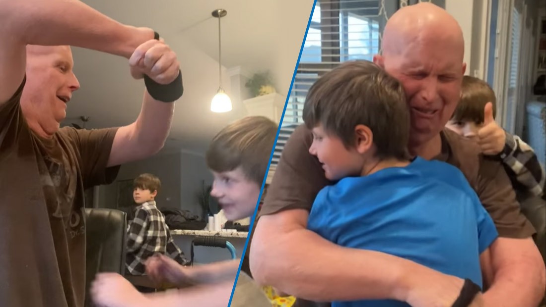 "This is the first time I've gotten to hug my boys" said the grandfather, who suffered a stroke eight years ago.